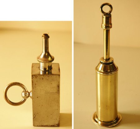Ces allumoirs très simples, sans molettes de réglage de mèches,étaient vendus relativement peu chers. Certains modèles étaient placés au bout de perches pour allumer cierges ou lustres. D’autres, comme décrits dans la publicité ci-dessus possédaient un embout (la clé) pour ouvrir et refermer le robinet de gaz des éclairages publics.