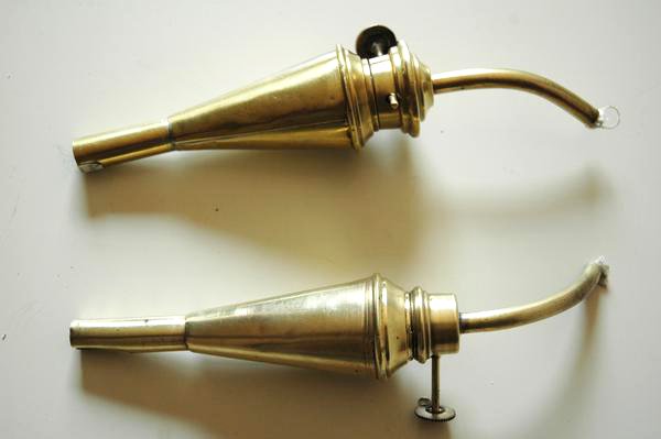 Ces allumoirs étaient aussi fixés au bout d’une perche. Souvent sur cette même perche, au dos de l’allumoir, était fixé un petit cône en laiton qui servait d’éteignoir.