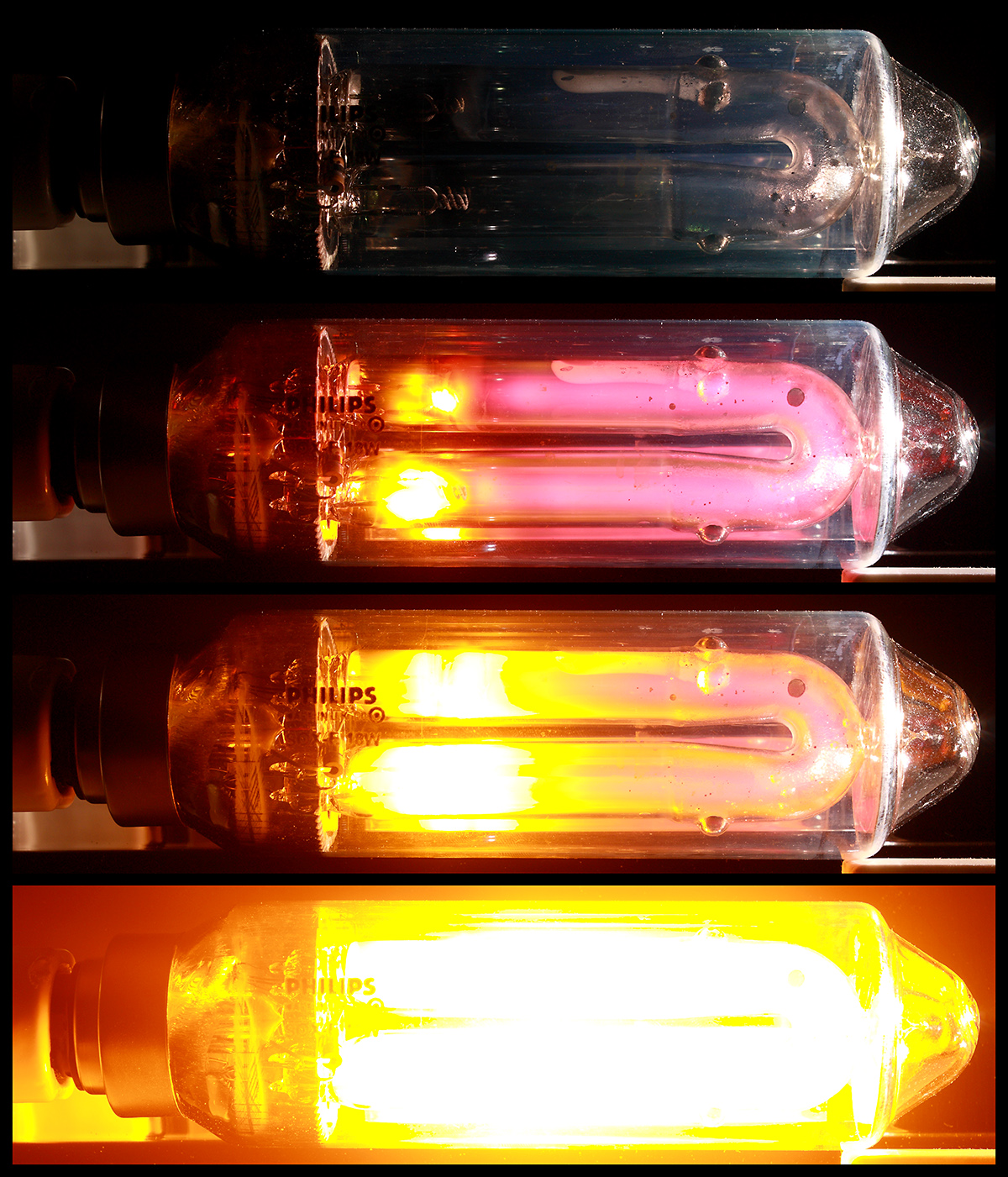 La couleur rose est due au néon (avec un peu d’argon) qui permet l’amorçage. La séquence complète dure environ 10 minutes.